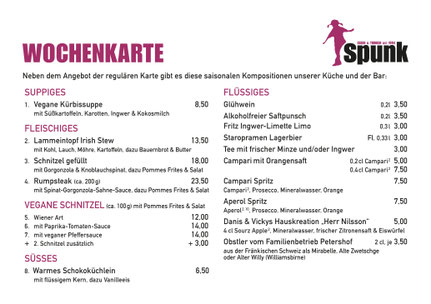 Saisonale Kompositionen unserer Küche und der Bar neben dem regulären Angebot. Gültig ab 8.11.2025.
